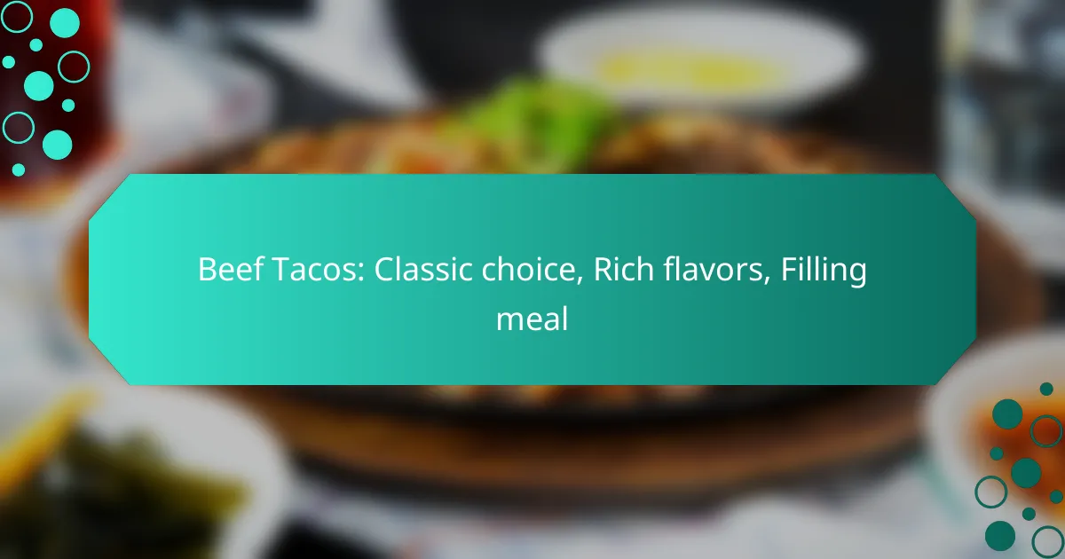 Beef tacos are a traditional Mexican dish consisting of a corn or flour tortilla filled with seasoned beef, often accompanied by various toppings. Their popularity stems from their rich flavors, versatility, and the ability to customize them to individual tastes.