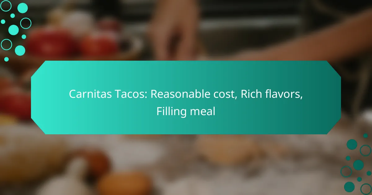 Carnitas tacos are a delicious and satisfying meal, known for their rich flavors and hearty ingredients. The slow-cooked pork, infused with spices, creates a tender and juicy filling that pairs perfectly with fresh toppings and warm tortillas. Additionally, they are reasonably priced, making them an appealing choice for those seeking a fulfilling culinary experience without breaking the bank.