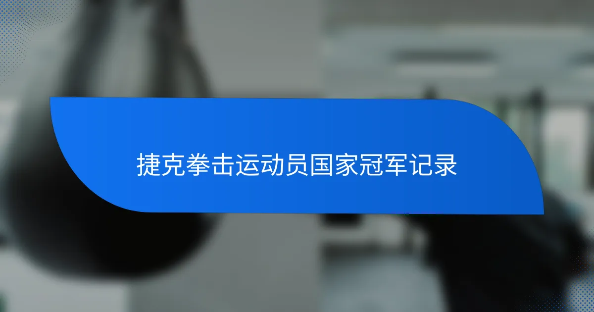 捷克拳击国家冠军头衔授予在各个体重级别中表现出色的拳手。这些头衔通常每年争夺,冠军来自地方、区域和全国比赛。这些头衔不仅象征着个人的成功,也代表了拳手在国家拳击社区中的地位。