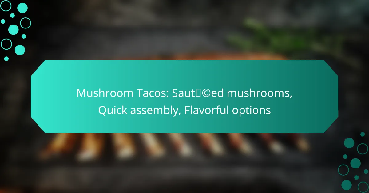 Quick assembly tips for mushroom tacos focus on preparing ingredients ahead of time and utilizing efficient techniques to streamline the process. By organizing your components and choosing the right tortillas, you can enjoy flavorful mushroom tacos with minimal effort.
