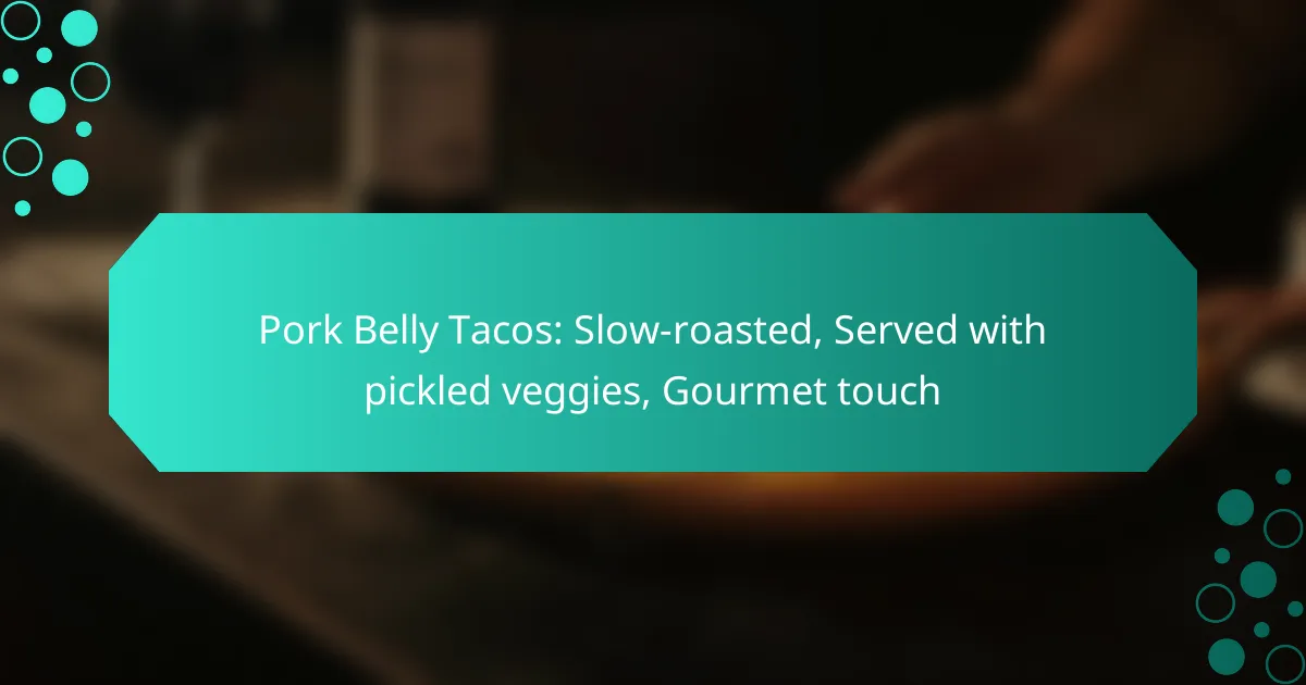 Pork belly tacos are a flavorful dish featuring slow-roasted pork belly wrapped in tortillas, often accompanied by pickled vegetables. This combination highlights the rich, tender meat and adds a refreshing crunch from the toppings.