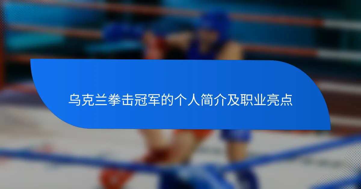 乌克兰拳击冠军的职业生涯亮点有哪些?